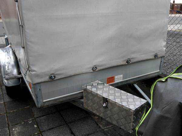 Der Anhänger verfügt über ein Stützrad, Anhängerschloss, Stützlastwaage, Zugmaulpuffer, Deichselbox mit Zubehör (variabel je nach Wunsch, im Mietpreis inbegriffen, u.a. Deichselhaube, Spanngurte, Stellbock, Adapter 13 auf 7 poligen Stecker, etc.)