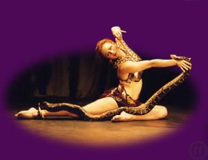 Durch ihre geschmeidigen Bewegungen verschmelzen Tänzerin und Schlange zu einer Einheit … Ein Spiel zwischen Anmut und Biegsamkeit.