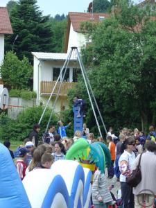 Der Kistenkletter-Turm ist eine Innovation aus unserem Hause. Er ist freistehend und muss nicht zusätzlich verankert werden. Das Klettern an Getränkekisten kommt aus der Zirkus-Welt und wird dort ohne Sicherung bewältigt. Ihre Kunden werden jedoch von unseren Eventprofis gesichert und in die Aktion eingewissen. Auch für die Zuschauer ist es spannend bis zur letzten Kiste! Die Aktion eignet sich für: Kinder, Jugendliche und Erwachsene. Eine Aktion für: Firmen, Stadtfeste, Leistungsschau, Jugendfeste, Sport Events, Teambuilding. Abmessungen (L x B x H): 4,00m x 4,00m x 5,50m Platzbedarf (L x B x H): 7,00m x 7,00m x 5,50m Strombedarf: Nein Abholung möglich: Nein Lieferung: Ja Betreuungspersonal: 1 Mitarbeiter Selbstbetrieb möglich: Ja Zusätzlich: Moderation und Musikanlage Sie benötigen weitere Attraktionen? Klicken Sie einfach rechts auf "alle Artikel des Vermieters"!